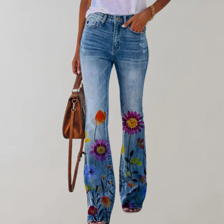 The Xandra Flare Denim Jeans make a bold statement, combining expressive floral prints with a flattering silhouette. Crafted from breathable, soft-touch fabric, these jeans deliver ease and movement while enhancing your shape with a retro-inspired flare. Perfect for adding color and confidence to your summer wardrobe.